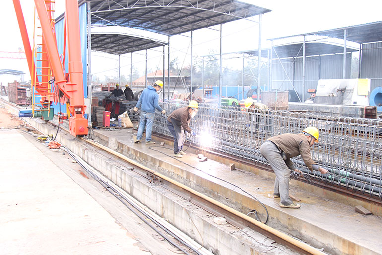 新年正月初六,氣溫驟降,陰雨綿綿,站在空曠的工地上,寒風呼嘯而過,感覺格外刺骨。走進11標項目部,頗顯冷清,值班的同事都在工地一線忙碌,只有公司副總經(jīng)理郭建文在等候我們,幾句寒暄之后,郭總帶領(lǐng)我們奔赴工區(qū)現(xiàn)場。郭總介紹,為了追趕進度,項目部安排混凝土攪拌站、兩個制梁場以及漣水河大橋連續(xù)開工,即使大年初一都沒有停工。